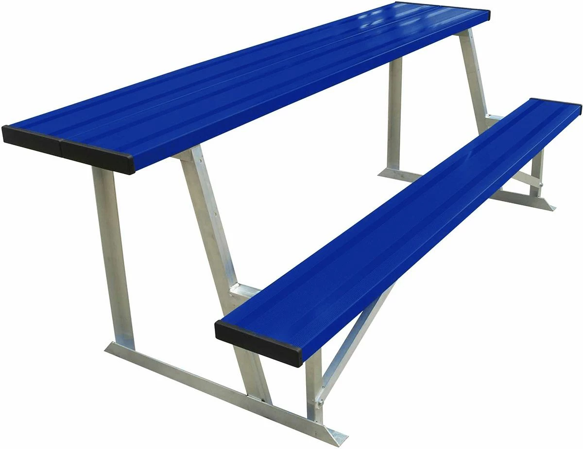 This powder coated outdoor scorer’s table & bench has a unique, all-in-one aluminum design that can be used for any outdoor sport. The portable scorer’s table has a tough, powder coated paint finish that will last for years. The table top is 20″ wide and provides plenty of space for score books, drinks and more. The aluminum seat plank is 5.5′ long and comfortably seats 4-5 people.