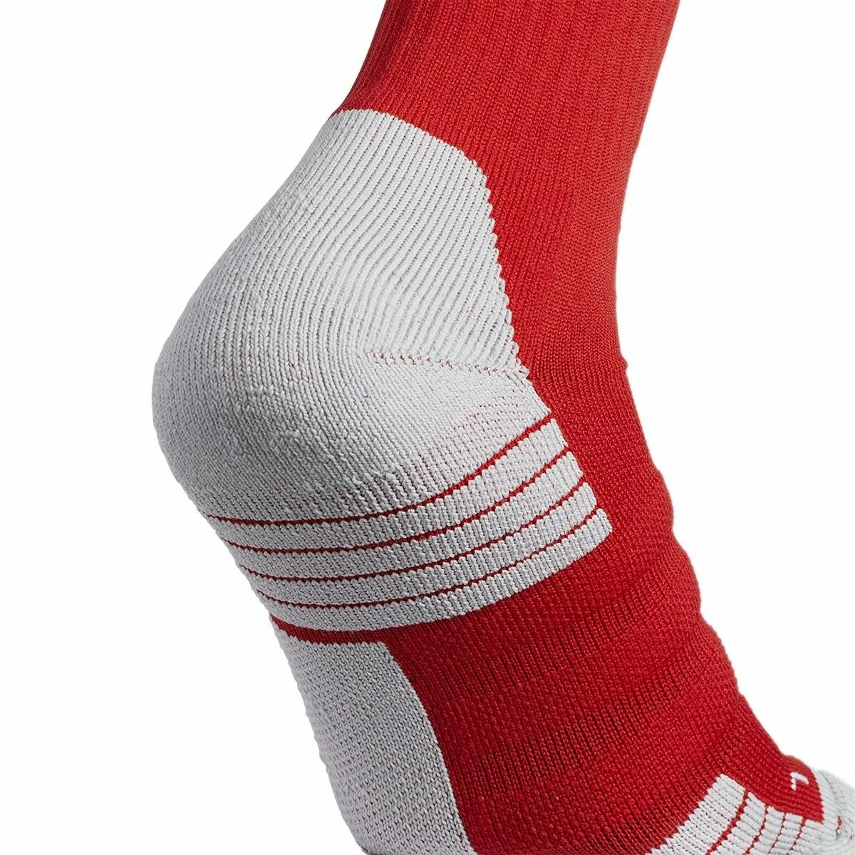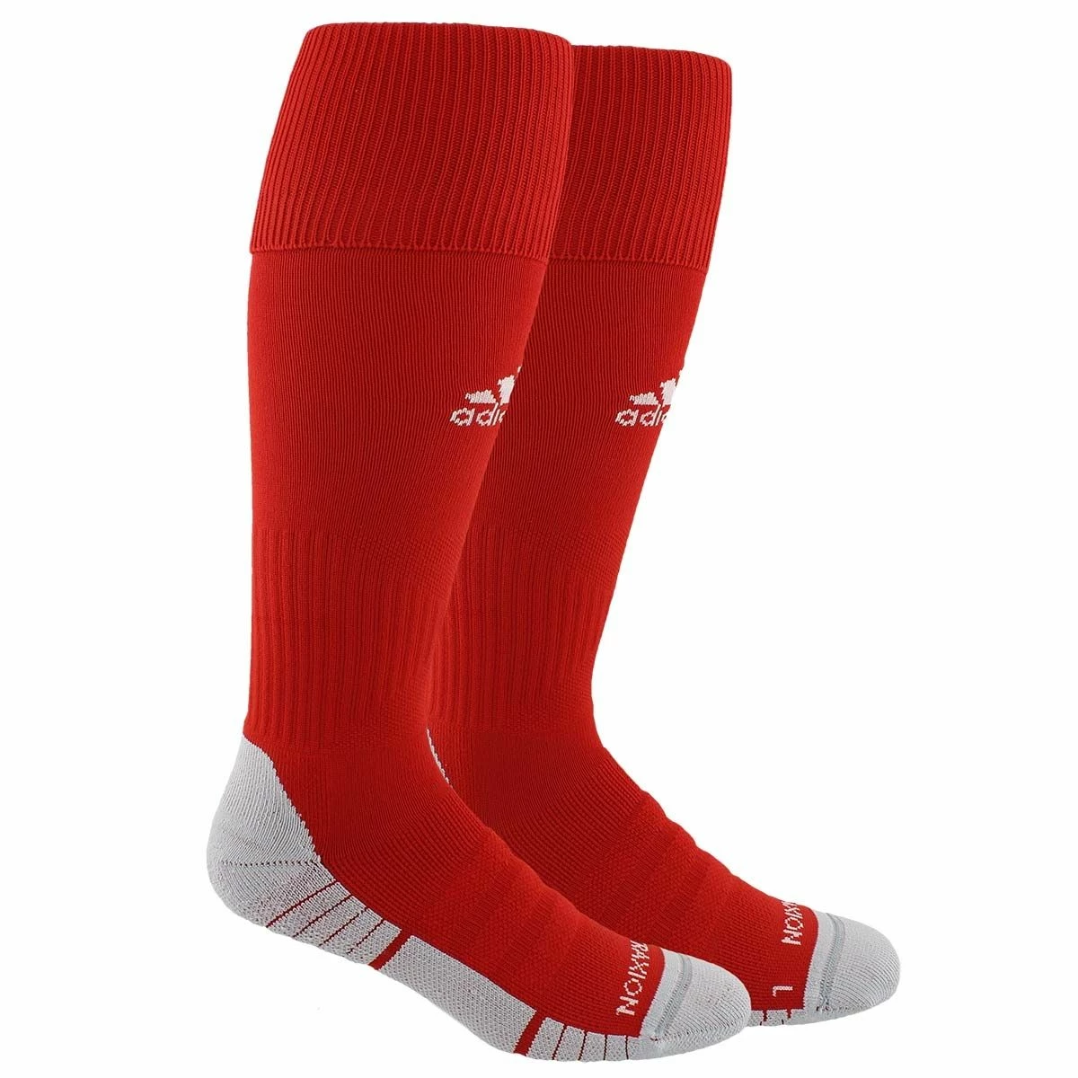 The Adidas Team Speed Pro OTC Soccer Socks are constructed of nylon and spandex, which allow for a secure fit due to the lightweight material. The sock is designed to ensure support with arch and ankle compression along with Climalite moisture-wicking technology to keep feet dry from sweat.