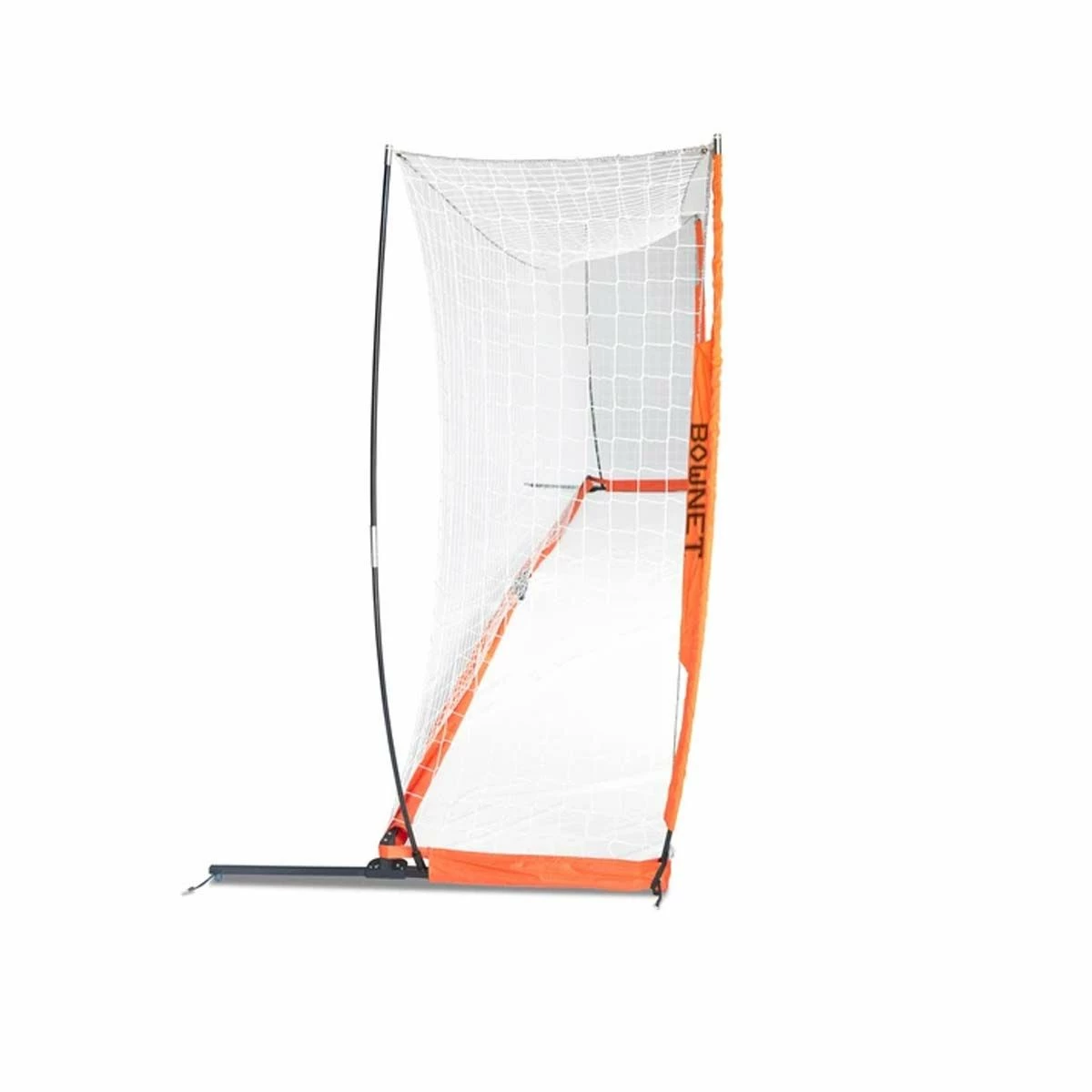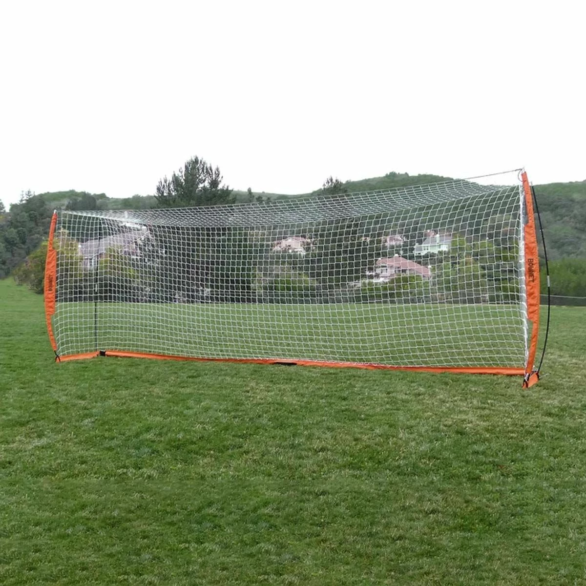 The BOWNET 8′ x 24′ soccer goal is ideal for indoor or outdoors as the goal has non-marking rubber feet. Set up a soccer game wherever you might need it with this portable goal, featuring a nylon net, ground stakes, a ground frame, stability legs, poles and a roller bag. The essence of BOWNET’s product design is the “bow” in the poles. This unique design offers a flexible, lightweight, and portable system that is durable enough for the pros. BOWNET has revolutionized the sports netting business with it’s Energy Absorption System (EAS). BOWNET goals release the energy of the shot three times, saving the life of the net while making the goal stable and durable. You can’t knock it over!