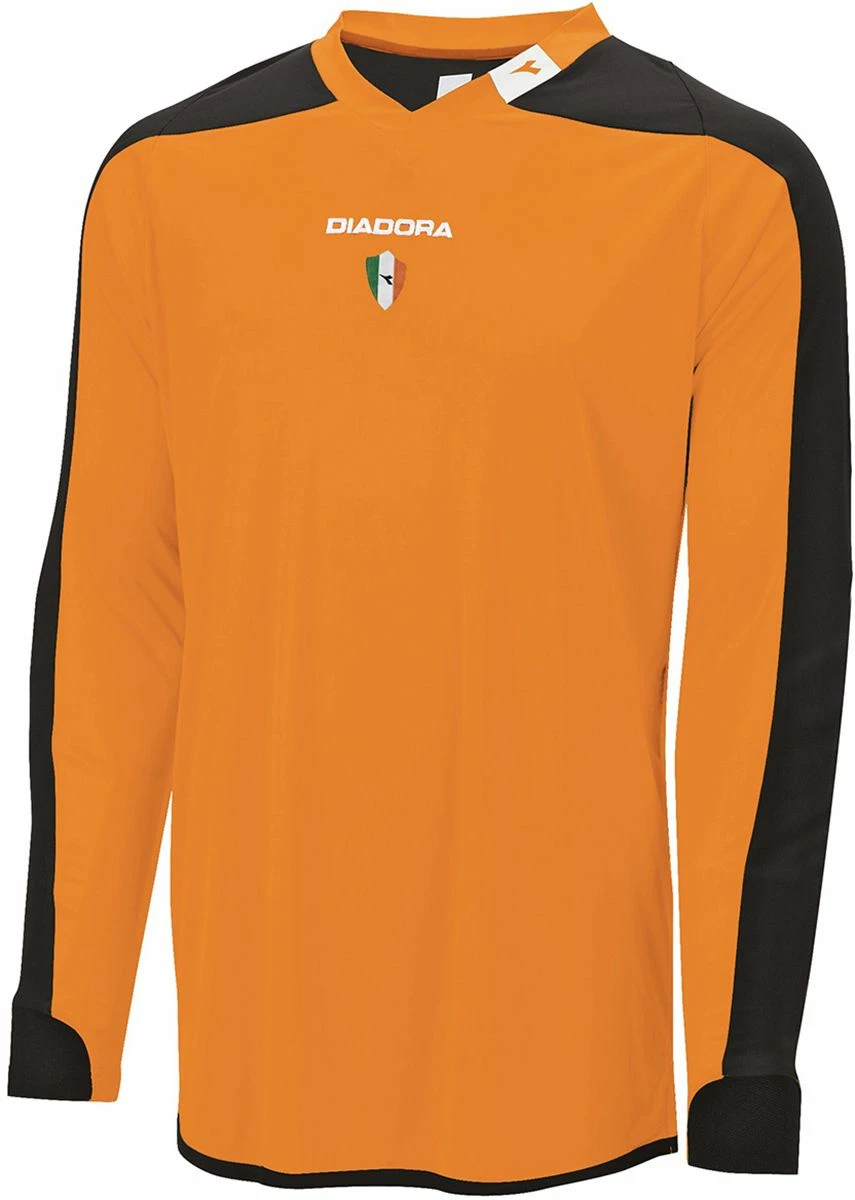 The Diadora Enzo goalkeeper jersey is made of a four way stretch fabric with long sleeves and a ribbed insert on the sleve cuff for comfort and freedom of movement. The elbow area is padded for extra protection. The neckline is ribbed with the Diadora logo screenprinted below. The DiaDry moisture management ensures you will stay cool in this comfortable colorblocked jersey. Diadora is the only company to still make their athletic footwear and apparel in Italy as a family run business.