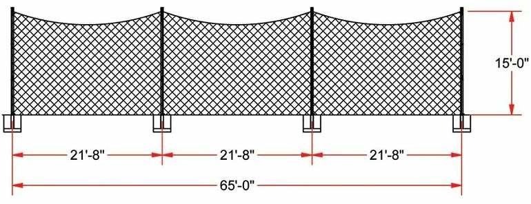 Stop wasting time during practices and games chasing missed shots or errant passes and ensure the safety of athletes, coaches and spectators on adjacent fields. This ball stop 15′ x 65′ netting system consists of four in-ground, powder coated, aluminum uprights and 65′ of UV-treated black netting. Ideally placed behind lacrosse goals, the 1-3/4″ mesh net contains most sport balls.