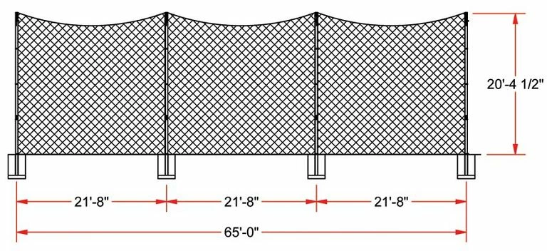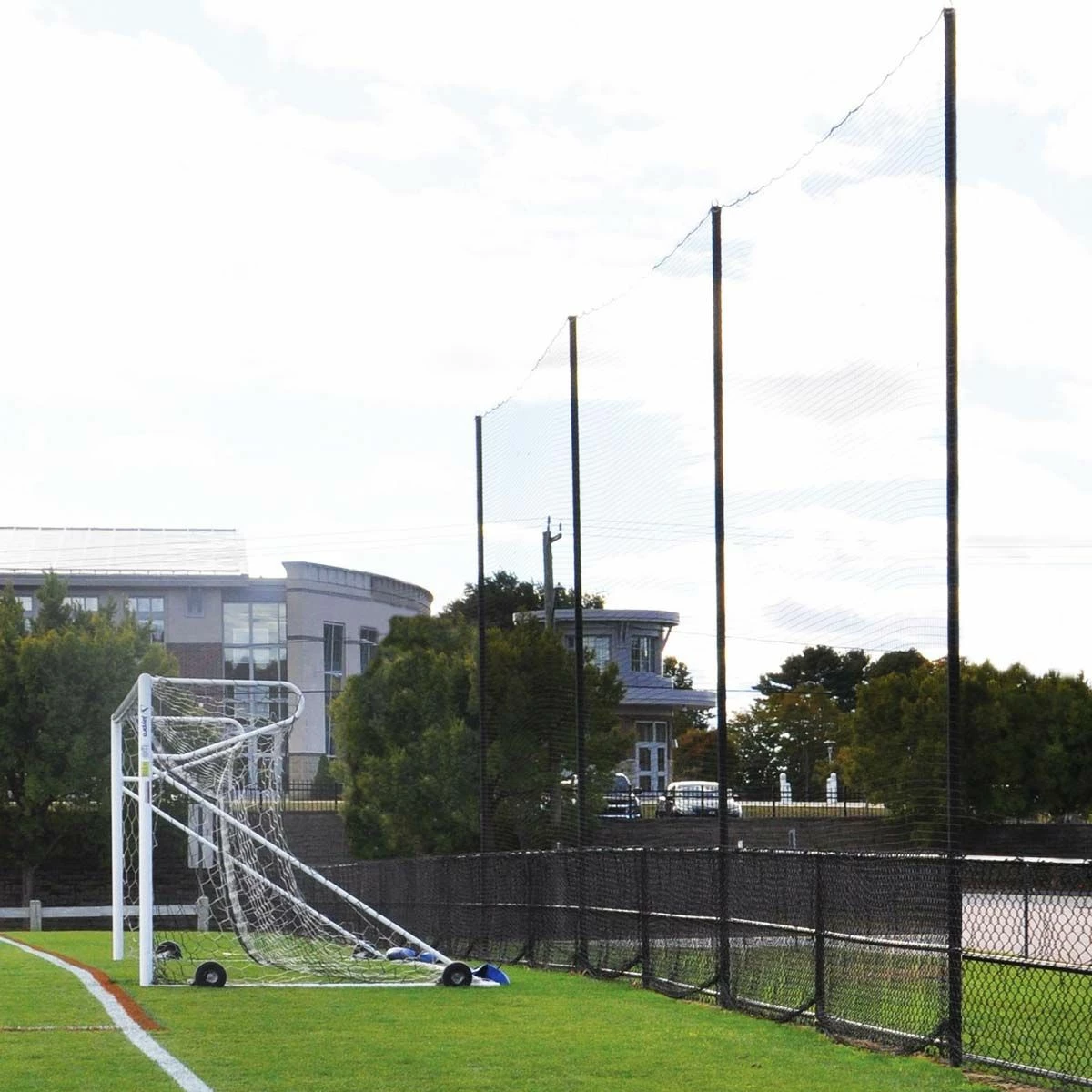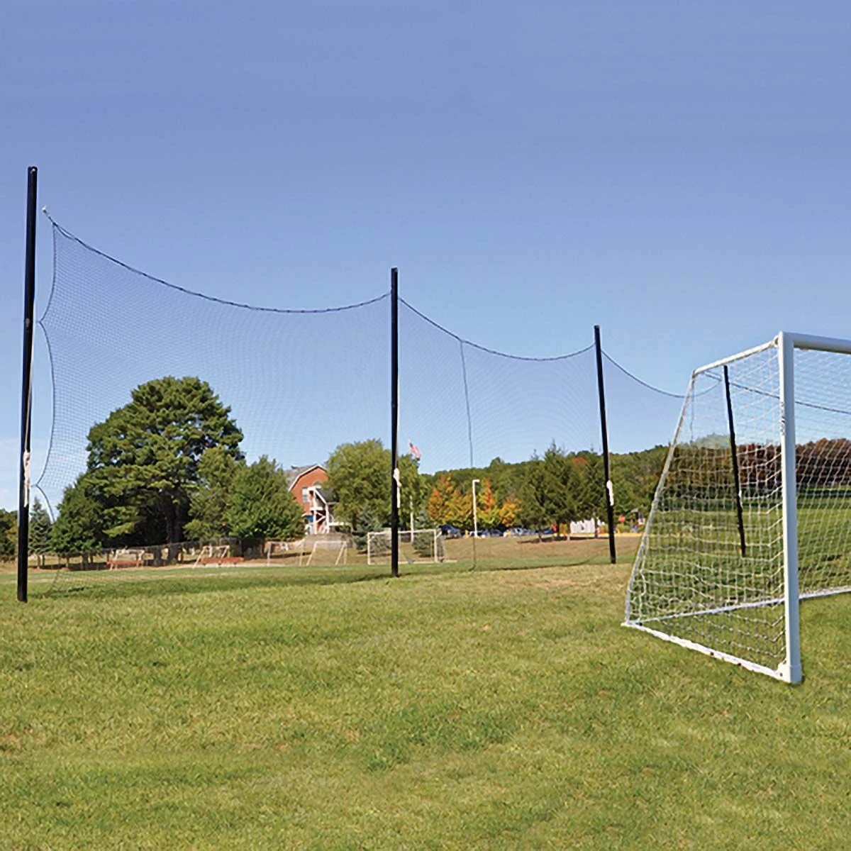 Stop wasting time during practices and games chasing missed shots or errant passes and ensure the safety of athletes, coaches and spectators on adjacent fields. This 20′ x 65′ ball stop netting system consists of four in-ground, powder coated, aluminum uprights and 65′ of UV-treated black netting. Designed to be placed behind soccer goals, the 3-1/2″ mesh net easily raises and lowers with an integrated rope and pulley system
