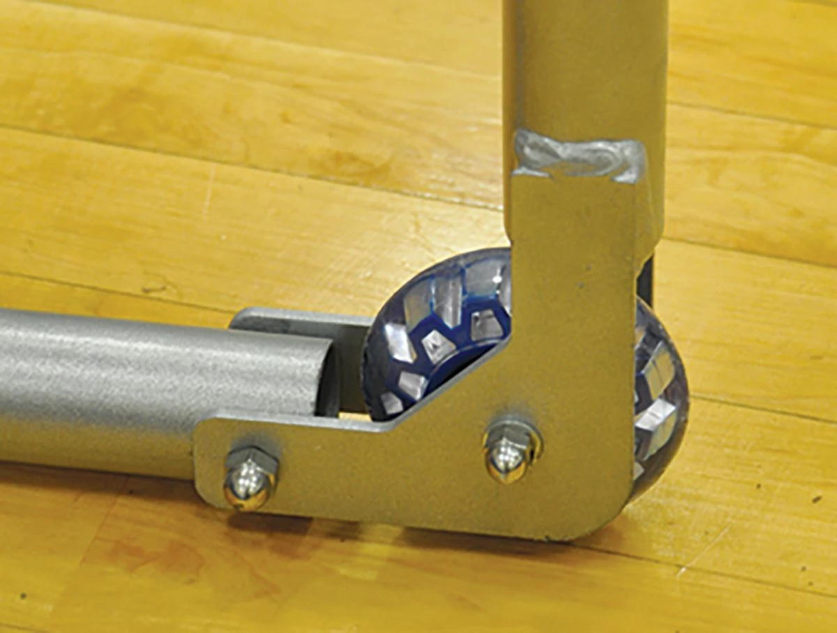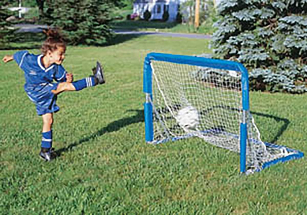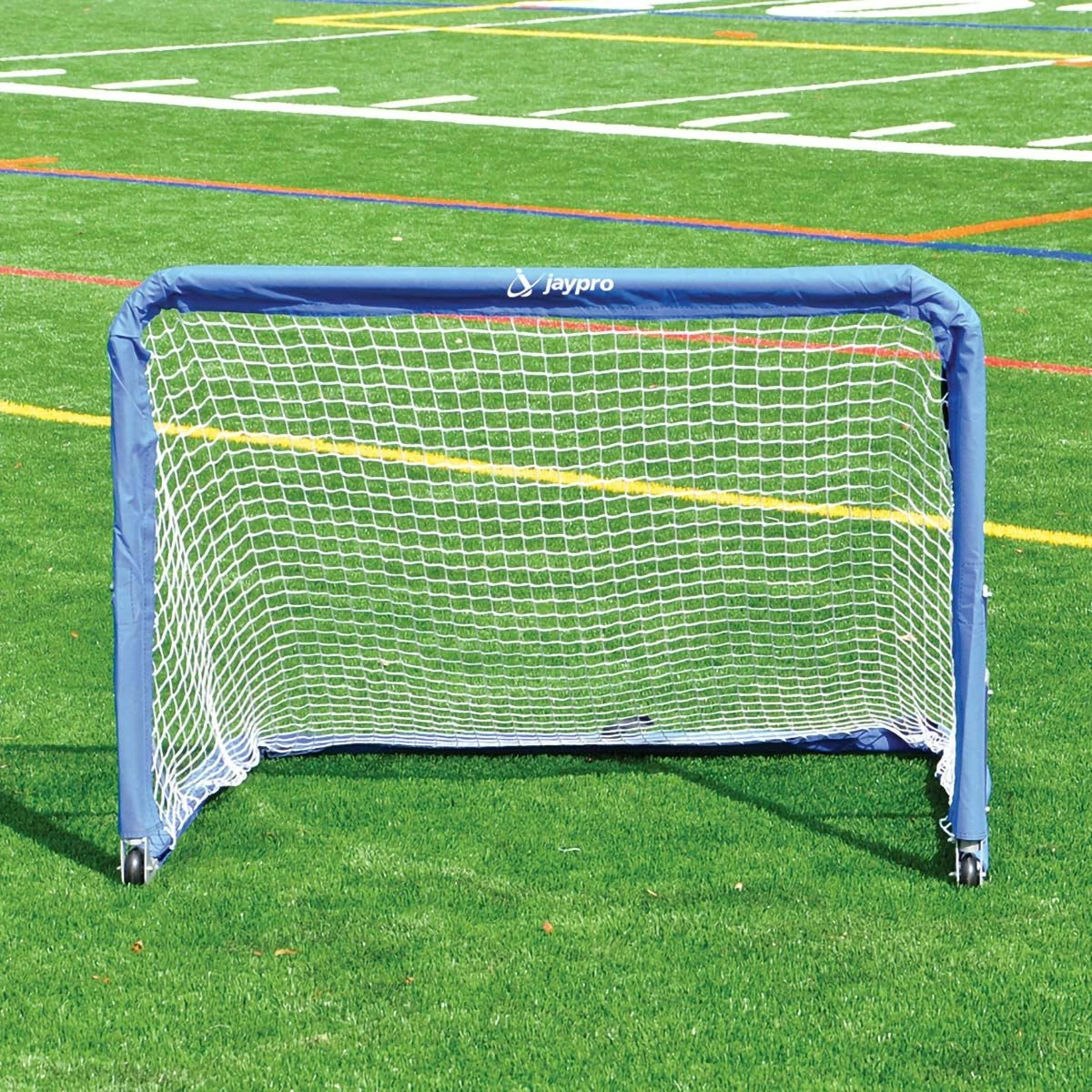 The Jaypro STG-34 soccer goal has a unique folding design that makes is easy to transport and store. Quick release pins allow the goal to fold flat in seconds without removing the net and the net has a sleeve design that gives the goal a great look. This attractive, versatile goal is great for short-sided games and developing shooting skills for both institutional and back yard use. In-line wheels (see inset) are included and make this goal an excellent choice for the gym and the field.