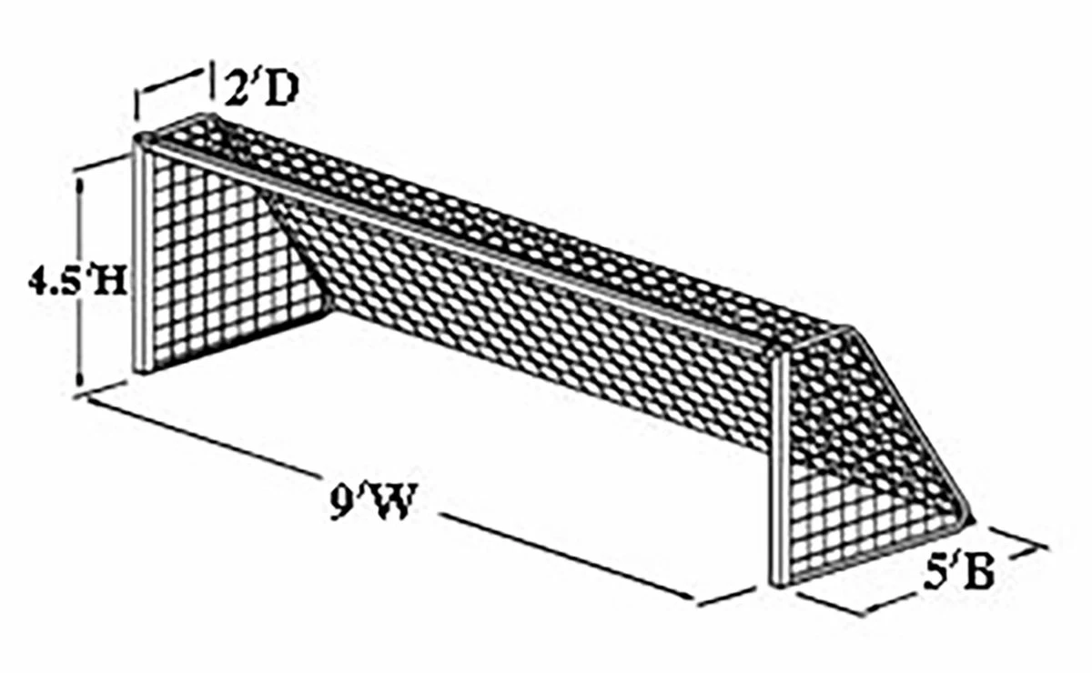 This pair of Jaypro SCN-9 4.5′ x 9′ x 2′ x 5′ youth soccer nets fit neatly on Jaypro club soccer goals, as well as goals by other manufacturers.