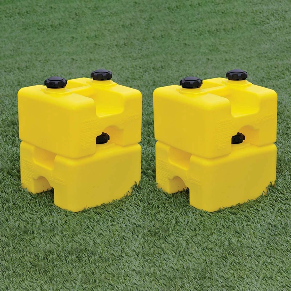 The Jaypro SGA-50 World Cup soccer goal anchors are ideal where in-ground anchoring devices are not appropriate. The hard plastic shell will not crack and will last for years. Fill in the field with 50 lbs of concrete, 30 lbs of sand, or 24 lbs of water for maximum couterweight. The anchor also has a built-in carry handle and stackable design for convenient transportation and storage. Refer to your goal’s ASTM counterweight requirements to ensure proper anchoring.