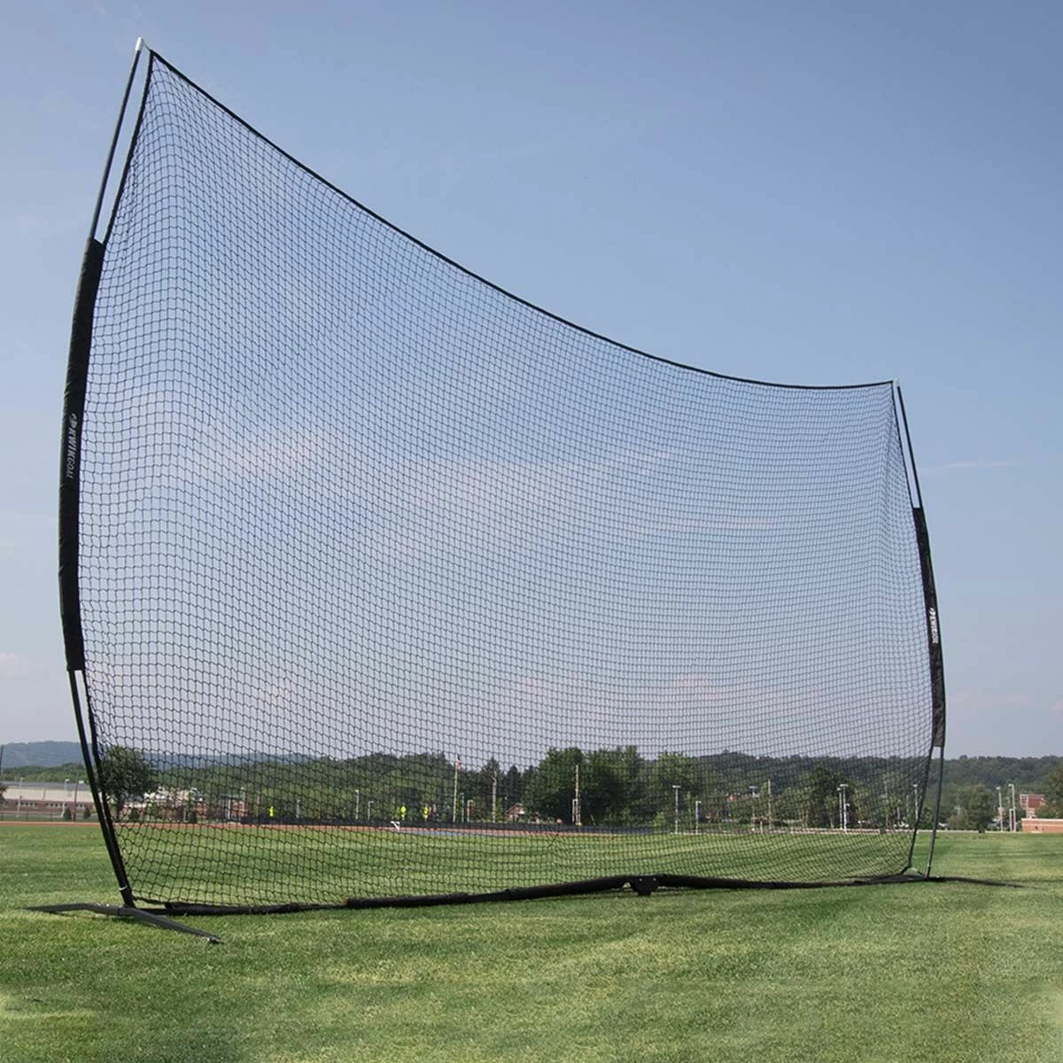 Set up a field backstop or field barrier anywhere with the Kwik Flex backstop from Kwik Goal. The large portable 11.5′ x 21.5′ backstop features a lightweight, no tool assembly and take-down design with a 1-3/4″ mesh that will stop balls as large as a soccer ball and as small as a baseball. The Kwik Flex backstop has a durable fiberglass and steel construction and includes 4 portable “U” anchors and a carry bag for easy transport.