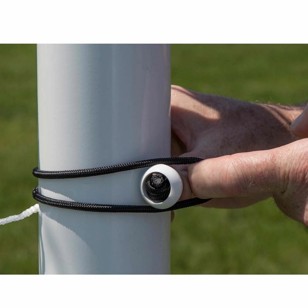 Kwik Goal bungee net fasteners are a quick & easy way to attach your net to most goals. These bungee net fasteners keep things in place when you fire the ball past the keeper! You don’t need a high-tech solution to keep your new soccer net in place! These net fasteners are made of 1/4″ black elastic cord and are UV resistant. One pack of 180 will hold 2 official sized nets (8′ x 24′) in place.