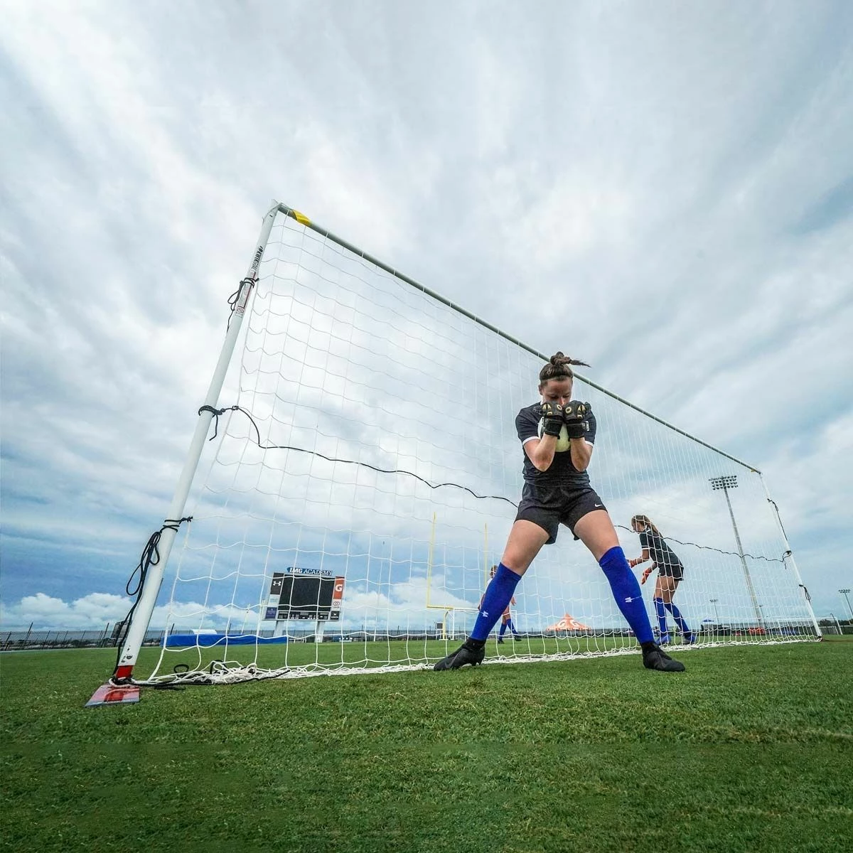 The Kwik Goal NXT 6.5′ x 18.5′ training frame (WC-185) features a flat-faced goal design that allows for simultaneous training on both sides of the goal. The NXT WC-185 goal is built to last with a sturdy 1¾” round aluminum frame and durable 3mm, 120mm mesh, white netting. This training frame has a Kwik Button® assembly that makes set-up and break-down quick and easy. Transport the NXT frame to practice with ease in the included carry bag.