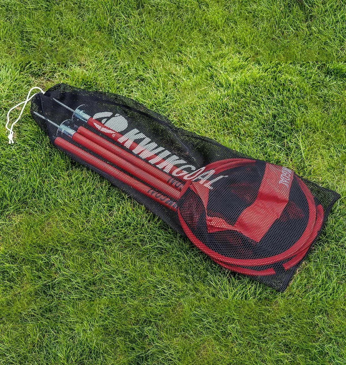 The Kwik TOM soccer mannequin features a heavy-duty polyester and steel frame construction with a foldable design that easily folds down to fit into the included carry bag. In fact, the Kwik TOM is specifically designed for compact storage and exceptionally easy transportation. The mannequin is set up on natural surfaces by utilizing two, foldable, Coaching Sticks 2 Go (included).