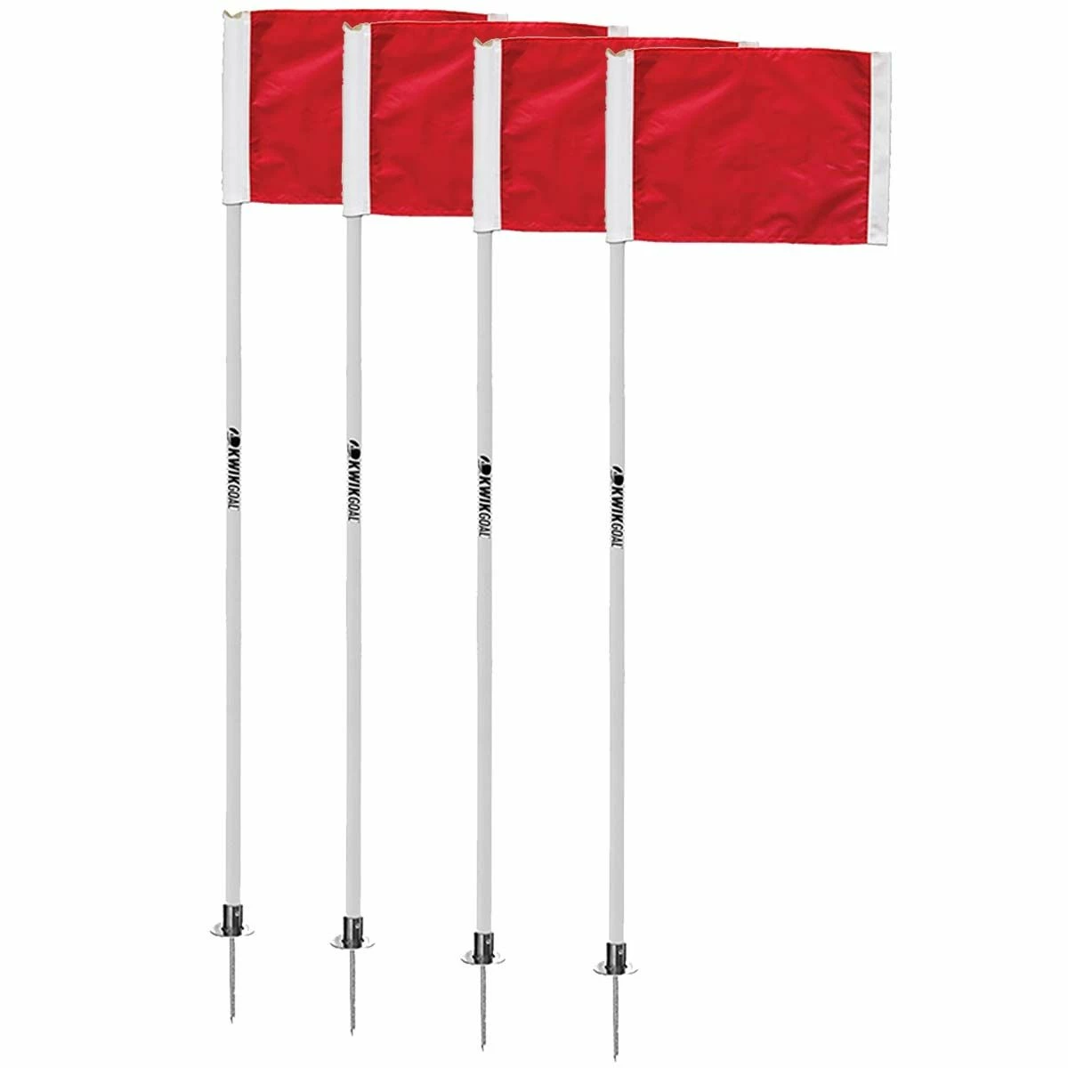 KwikGoal’s official corner flags meet NFHS & NCAA standards. These flags stand 60″ tall and have official 1″ round poles. The steel base and ground peg inserts easily into any grass surface.