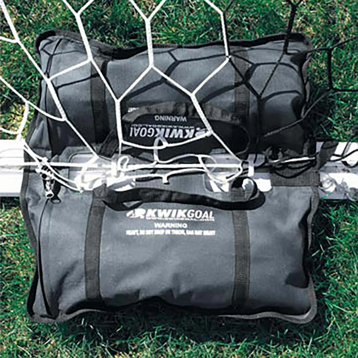 Kwik Goal’s saddle anchor bag straddles the bottom bar to add safety and stability to your soccer goals. Bag’s top openings allow for continuous net attachment. The plastic center strip allows for additional support while the reinforced stitching and zipper make the bag durable and long lasting.
