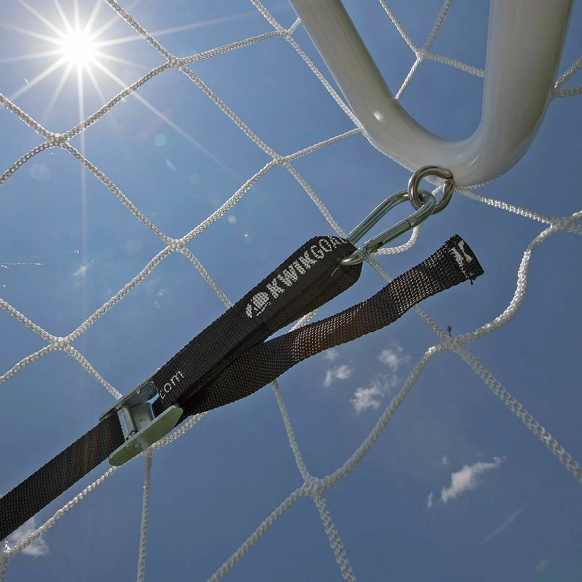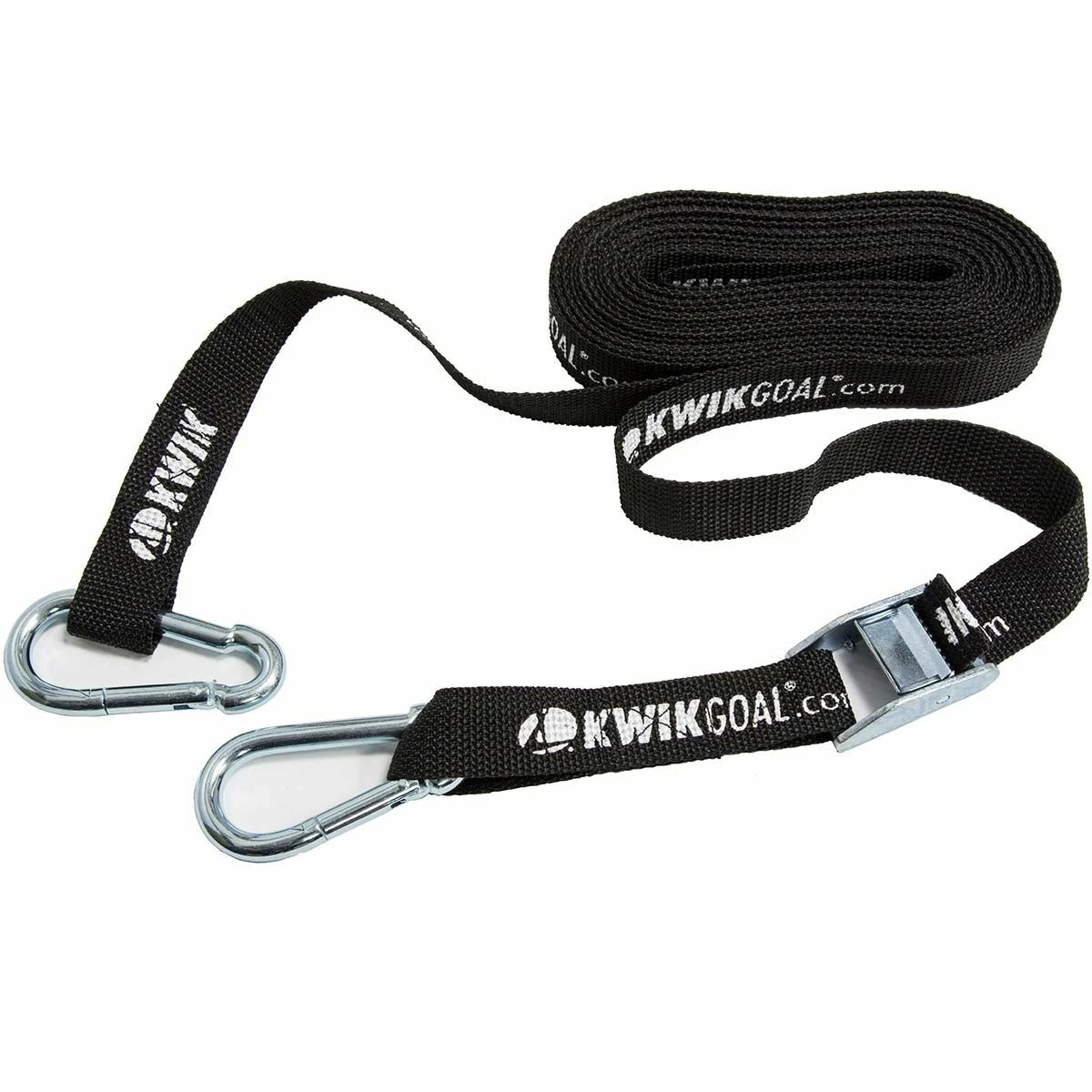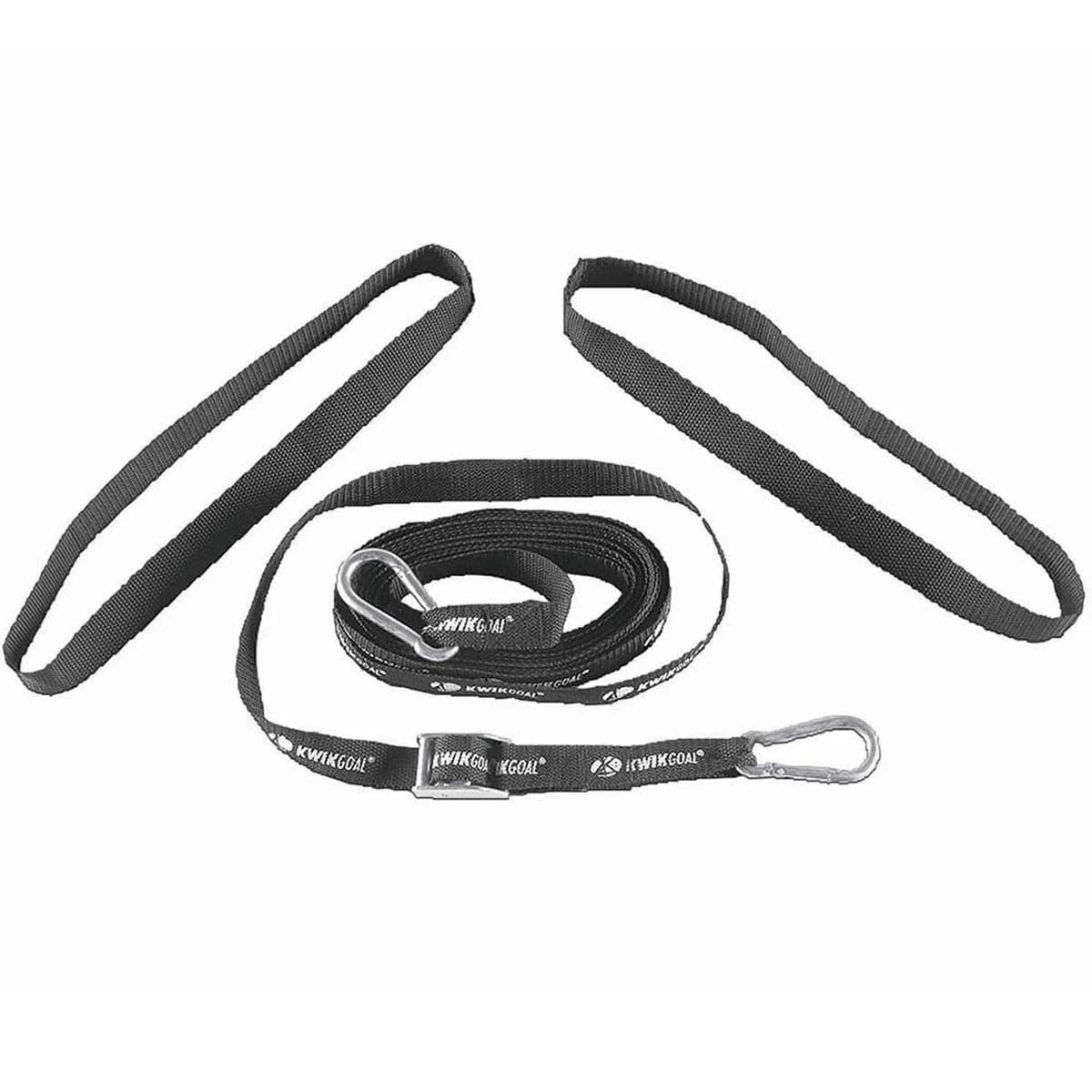 These Net Support Straps from Kwik Goal hold the net away from the goalkeeper. Set of two 25’L x 1″ wide straps with carabiner clip for easy attachment. Each set supports one pair of goal nets.