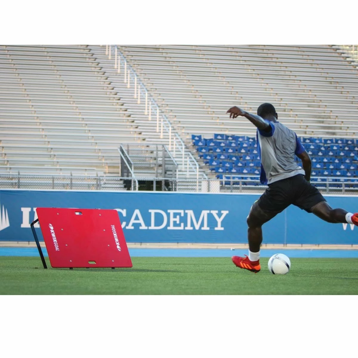 Kwik Goal’s Variable Angle Training (VAT) board offers ease of use and infinite possibilities as an on-field rebounding accessory to help your players improve their foot skills. Stabilizing angled brackets allow for alternating between perpendicular or angled usage without the need for tools, just flip it over.