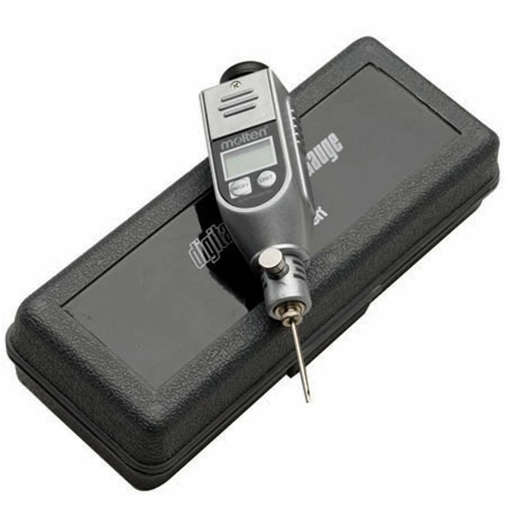 The Molten PGP digital pressure gauge is an all-in-one digital air pressure gauge with a built-in ball pump. This gauge and pump is ideal for referees and coaches looking for an accurate, compact, lightweight measurement device. It comes in a hard, plastic protective case that easily stores in your travel bag. The built-in pump and relief valve allow for an easy air pressure adjustment whenever it’s needed. Simply insert the gauge into the ball to read the air pressure in either hPa, bars, or psi units. Add air pressure with the built-in handle that pumps like a traditional handheld pump. Release air pressure via the relief valve button. This gauge also includes an extra inflation needle, needle lubricant, a lithium battery, and a small screwdriver to replace the battery.