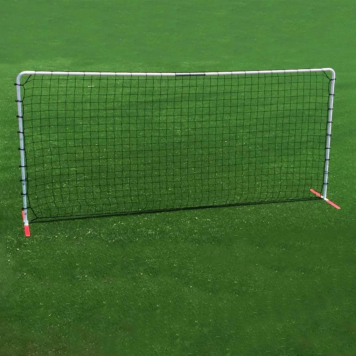 This 7’x14′ Quick Kick soccer rebounder from Probound has features that surpass other rebounders of similar design. The Quick Kick ball return uses an expansion tube to easily adjust the net when it is slightly loose or slightly tight. The heavy duty bungee net fixtures help to improve rebound characteristics and are easy to set up. 6″ steel spikes are attached to the underside of the ground bars to provide goal support. Use the the Quick Kick rebounder to practice a variety of drills alone or in a group practice and sharpen your skills!