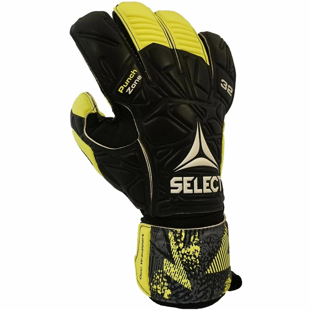 The Select 32 Allround goalkeeper glove features a flat cut palm with 3mm new softy latex to ensure a good grip in all weather conditions. This training and match goalie glove is equipped with mesh on the inside of the fingers to provide good air circulation. These goalkeeper gloves have an extra-wide latex wrist strap that provides greater support to the wrist and ensures quick, easy, and correct adjustment. The 32 Allround gloves are offered in sizes 7 to 11.