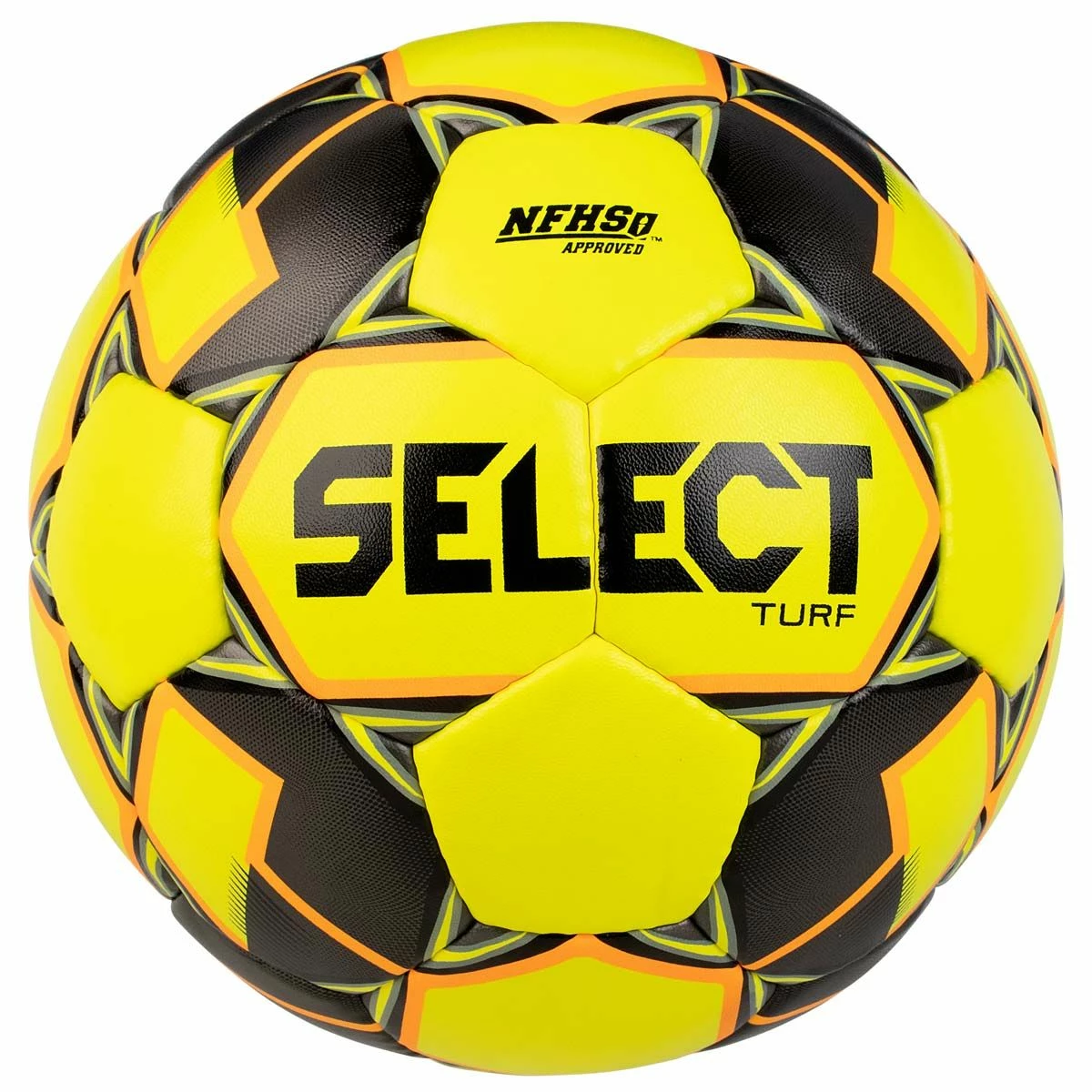 The turf soccer ball from Select is a budget-friendly option for players of all ages looking to play on turf or other hard ground surfaces. Constructed with a 1.0 mm grain polyurethane cover and a 7-wing latex bladder, this ball provides optimal bounce every time.