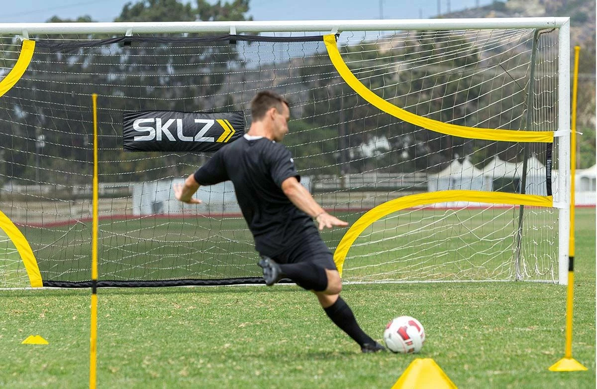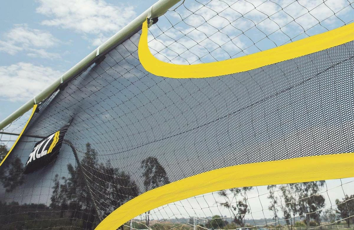 The Goalshot shooting & finishing trainer net helps players build muscle memory and creates visual targets needed to increase scoring percentages. Use this soccer training target to identify and shoot at the four ideal zones where you have the greatest chance to score. The Goalshot net is ideal for penalty kick training and finish training for all attacking players. The Goalshot shooting trainer attaches quickly and easily to any 8′ x 24′ goal.