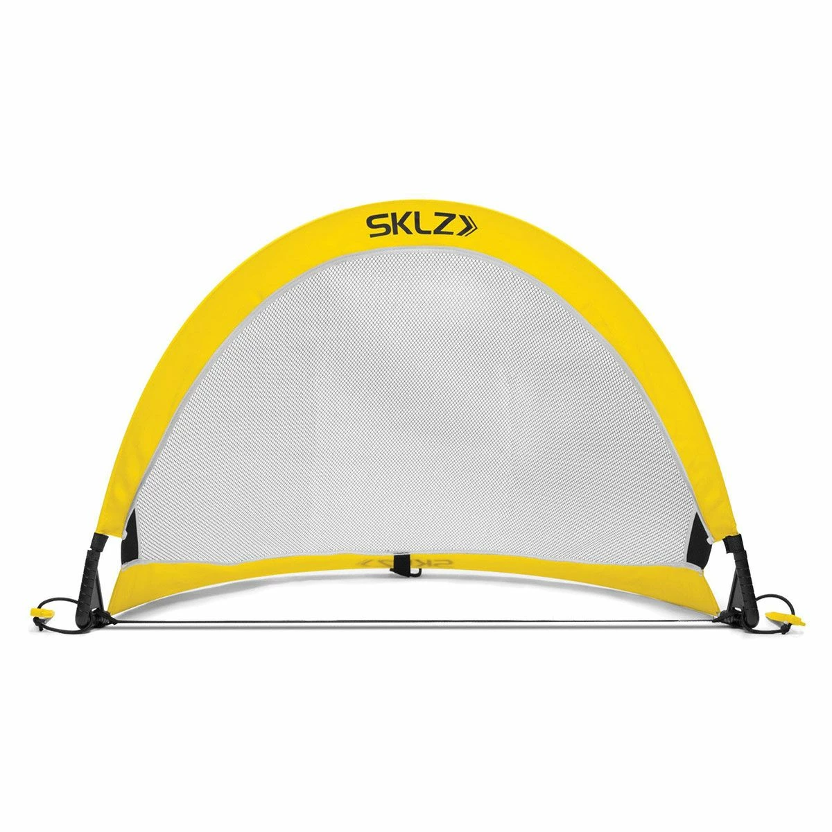 The SKLZ Playmaker 2.5′ pop up soccer goals are ideal for pick-up games and practice for players of all ages. The easy twist close design is great for quick breakdown and storage, making these nets ideal for taking with you to practice or a park with the included carry bag. Measuring 2.5′ across when assembled, the nets fold down to a portable compact size for travel. This pair of durable goals feature attached spikes that securely anchor into the ground for endless soccer fun.