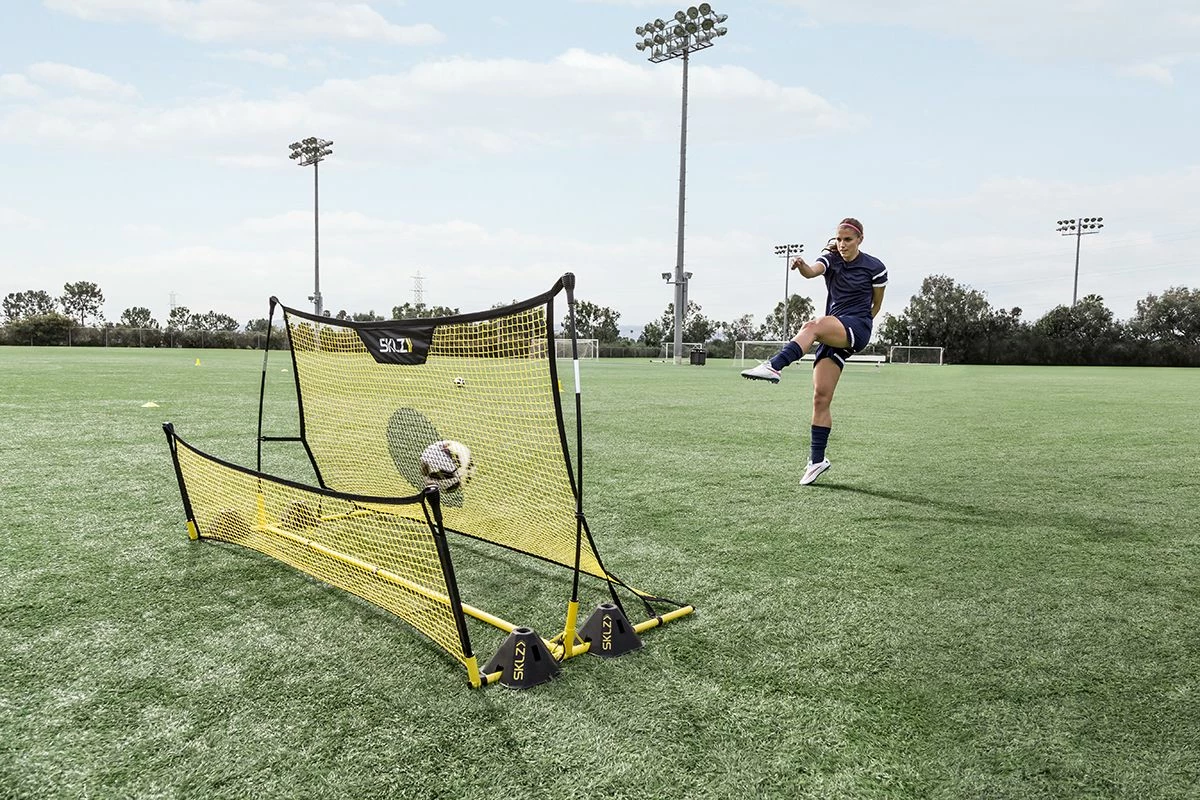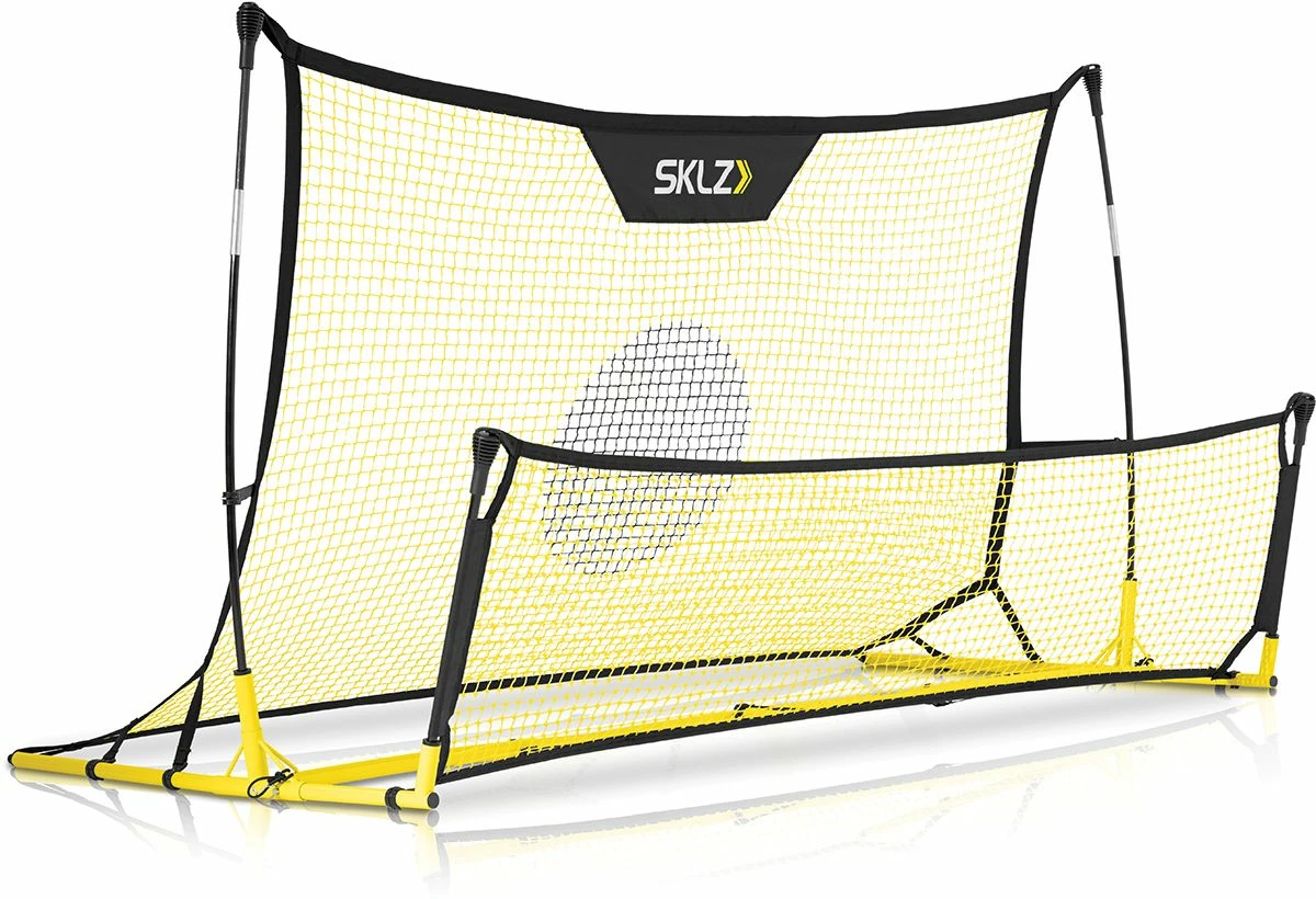 With the SKLZ Quickster soccer trainer, you can master the first touch by receiving passes in the air and on the ground. Maximize your reps from all angles with the unique net design that offers realizsting in-game experience at home. The unique dual sided net design provides true roll back to replicate partner drills.