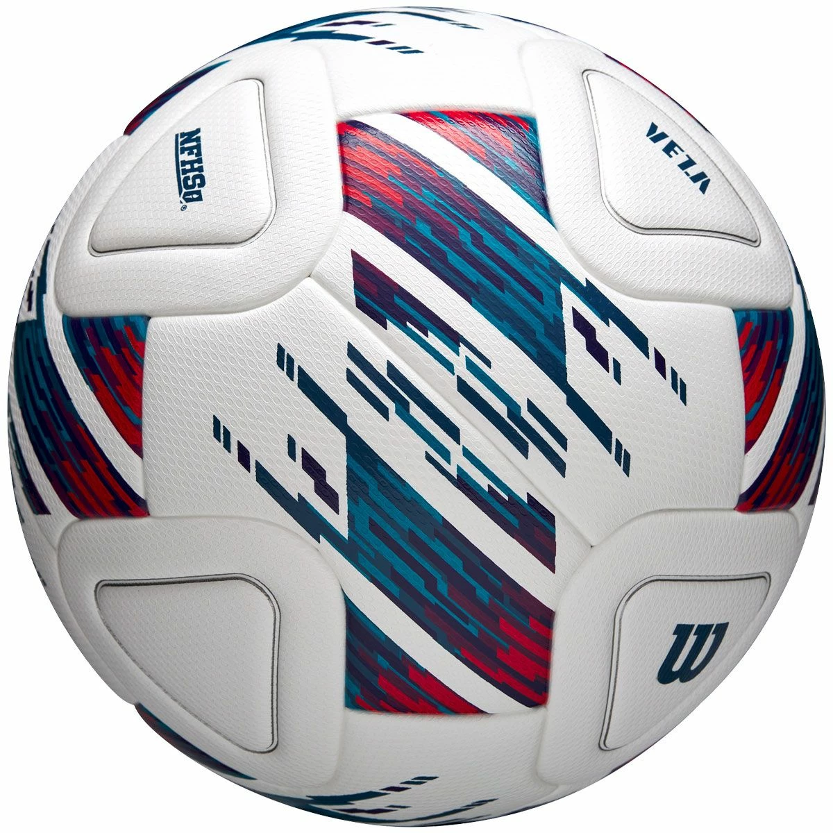 The Wilson Veza soccer ball is the perfect link of matchday performance, season-to-season durability, and value for any club. This ball features a unique 20-panel design that optimizes geometric striking zones, allowing for a consistent and controlled strike every time. Experience ultimate control with the textured cover and play in all weather thanks to the fused panel cover construction that minimizes moisture absorption. The advanced carcass and bladder provide a durable and balanced round shape that will last every season.
